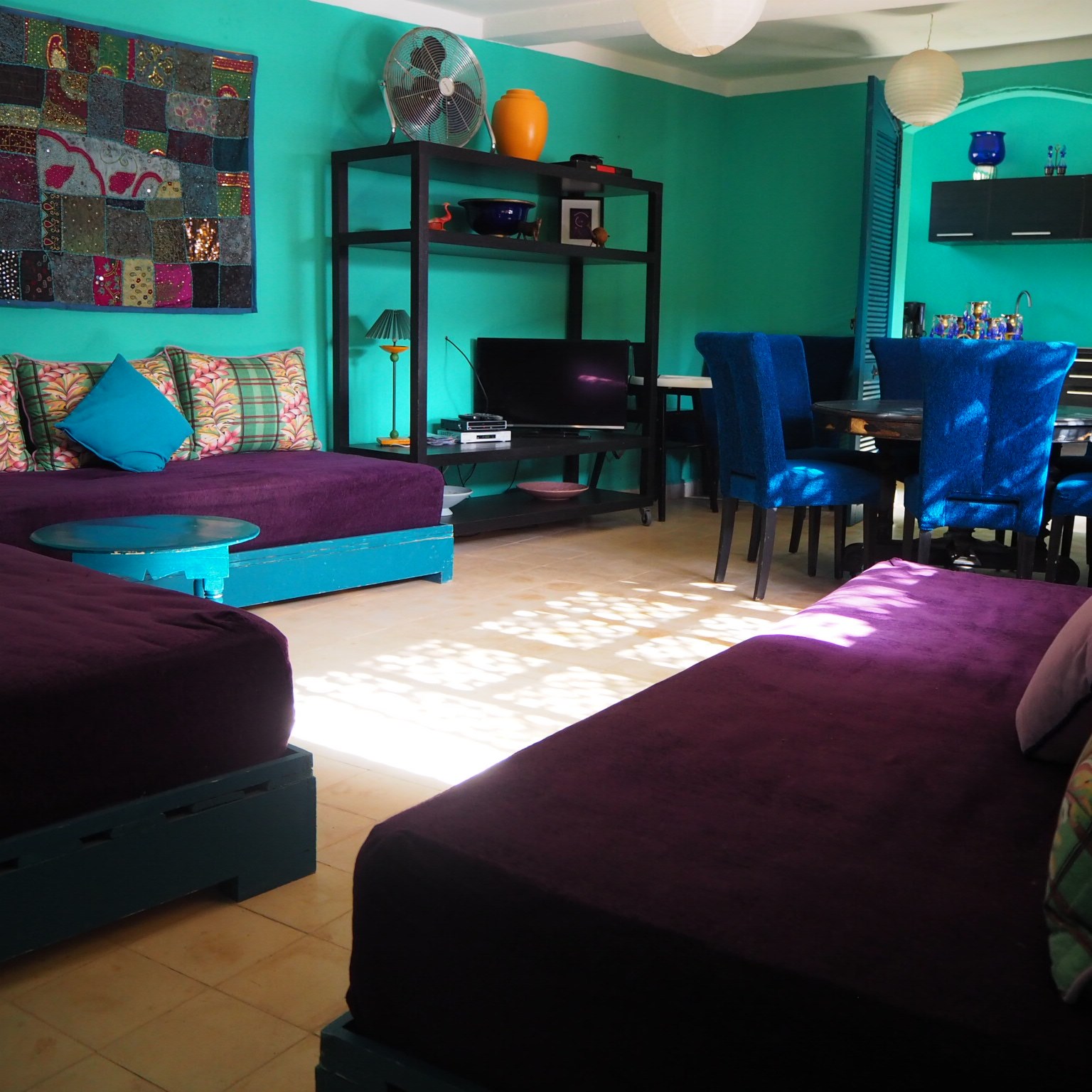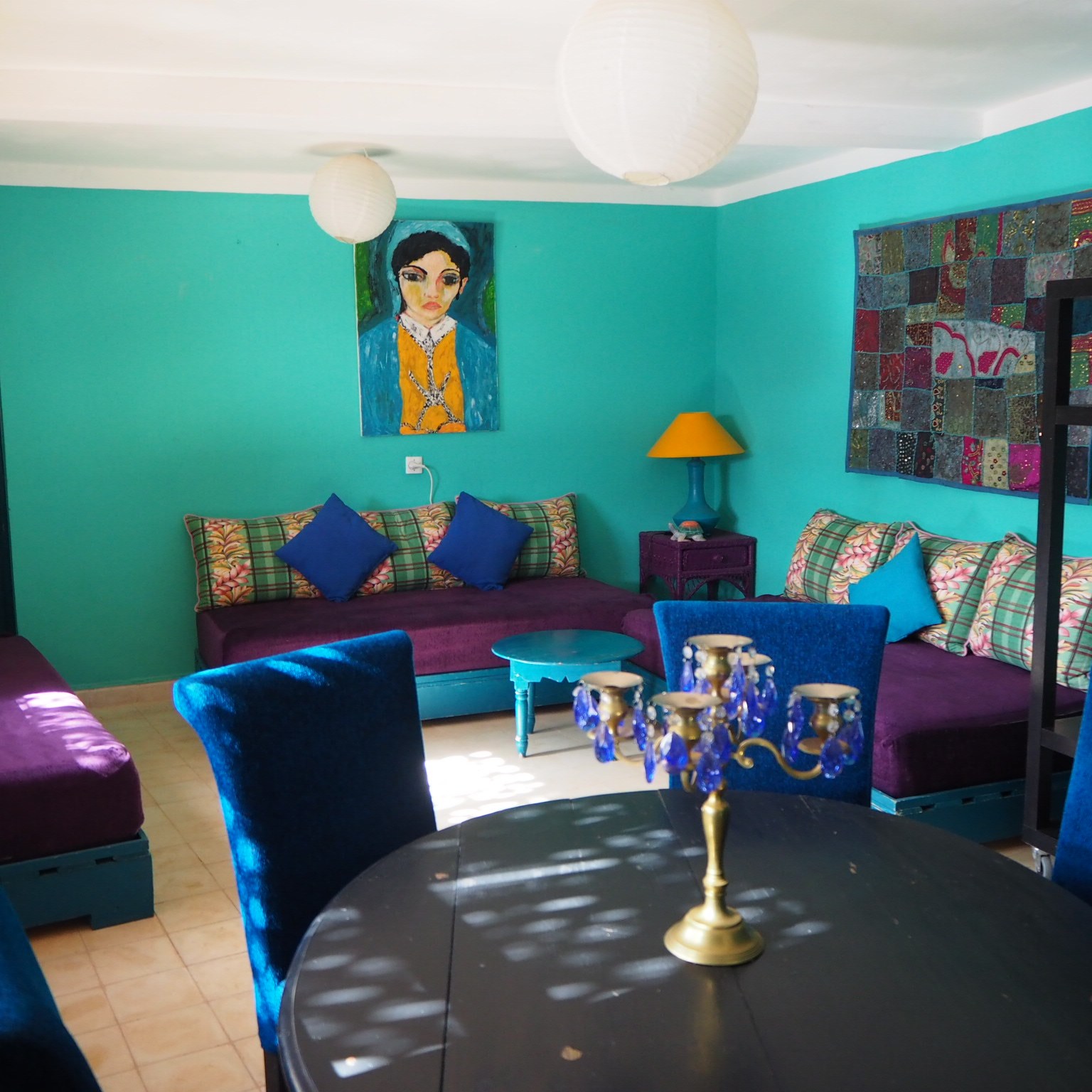 Cet espace peut, en fonction de vos besoins être transformé en 3ème chambre pour accueillir 3 personnes supplémentaires ; augmentant ainsi la capacité d’accueil à 8 personnes. Il est possible de fermer la porte donnant accès à la cuisine afin de préserver l’intimité des personnes qui occupent le salon.
