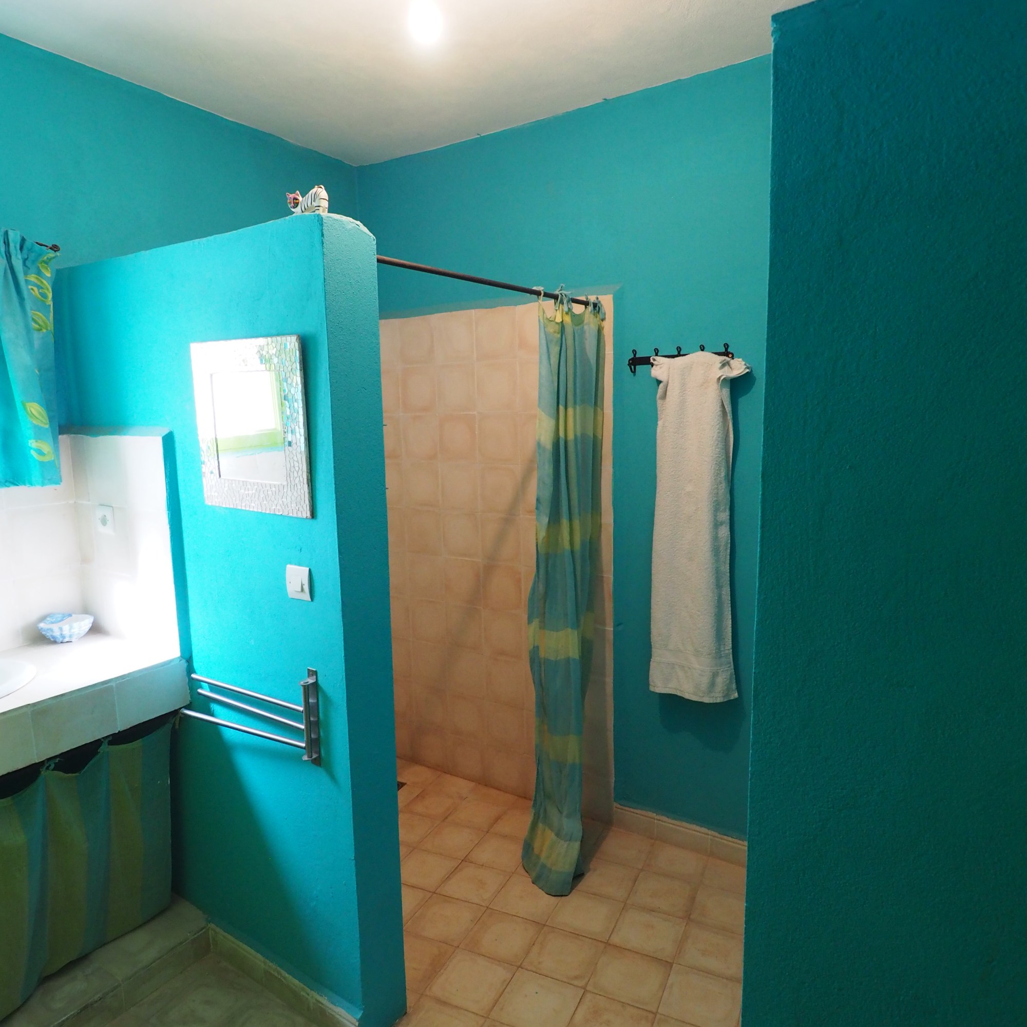 Une 3ème salle de bain, attenante au salon, est aussi disponible pour les personnes qui séjournent dans le salon. ( Douche, vasque, WC). Elle est aussi accessible depuis la piscine et la terrasse.